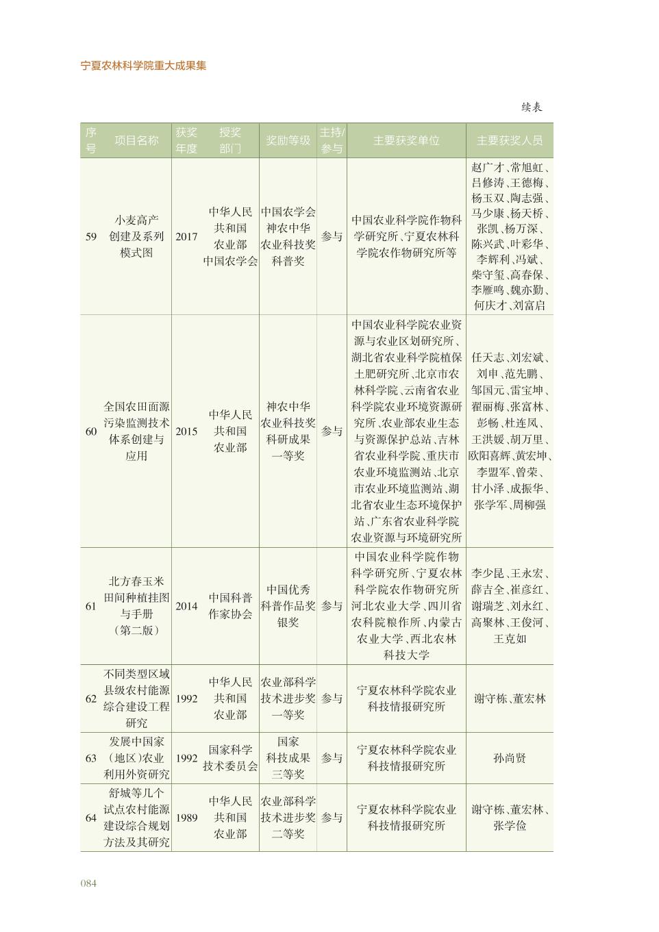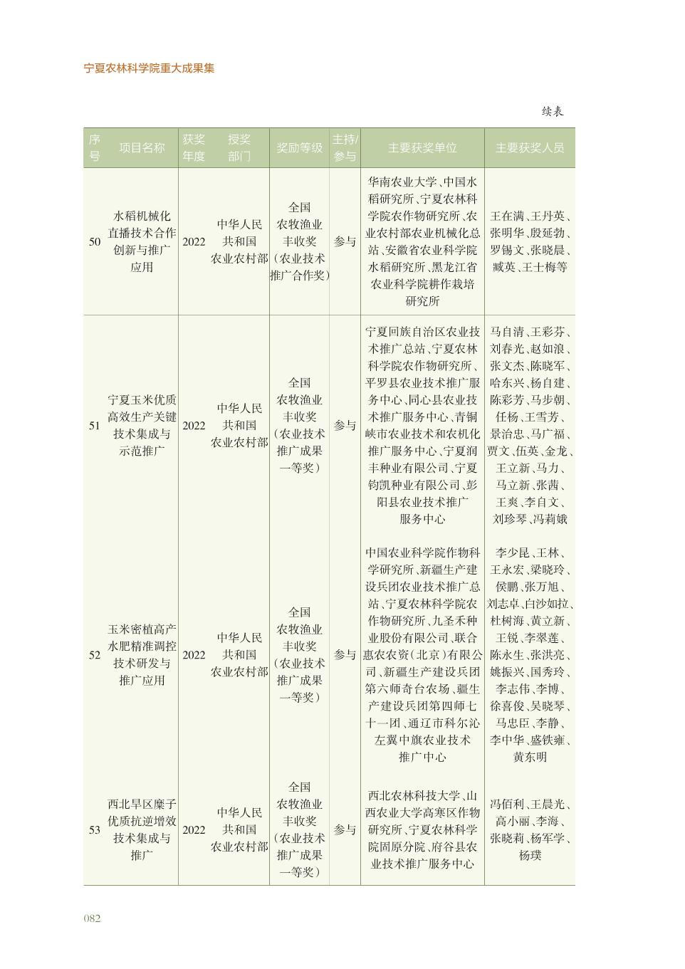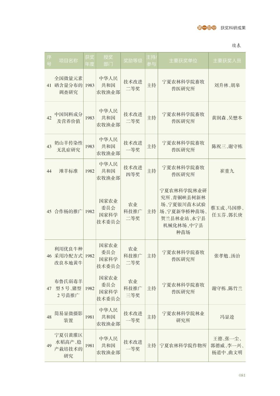 宁夏农林科学院获得国家部委奖科研成果名录