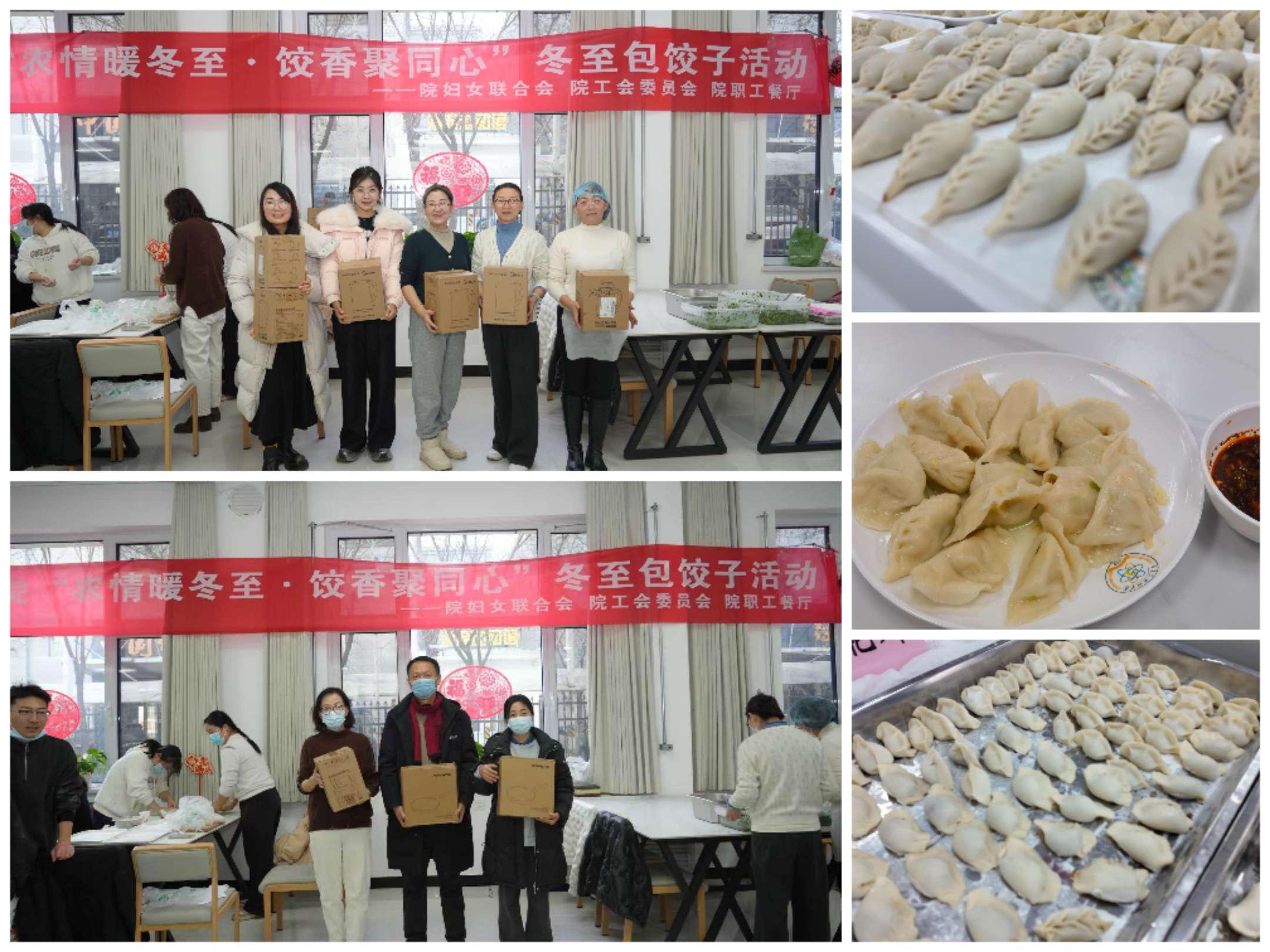 冬至将至,岁寒情暖。为进一步弘扬中华民族优秀传统民俗文化,丰富职工精神文化生活,12月19日上午,宁夏农林科学院妇联、工会联合职工餐厅举办“农情暖冬至∙饺香聚同心”包饺子主题活动,院党组书记刘常青、院长常学文、党组副书记赵兵及院机关、院属各单位100余名职工齐聚一堂,亲手包制饺子,共迎冬至佳节。
